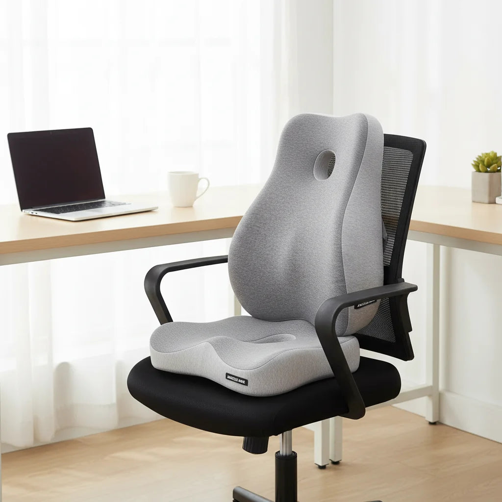 It's the full-body hug your chair needs. Unlike basic cushions, our dual-component set provides targeted support for both your back and seat, working together to eliminate pain and boost your sitting stamina.